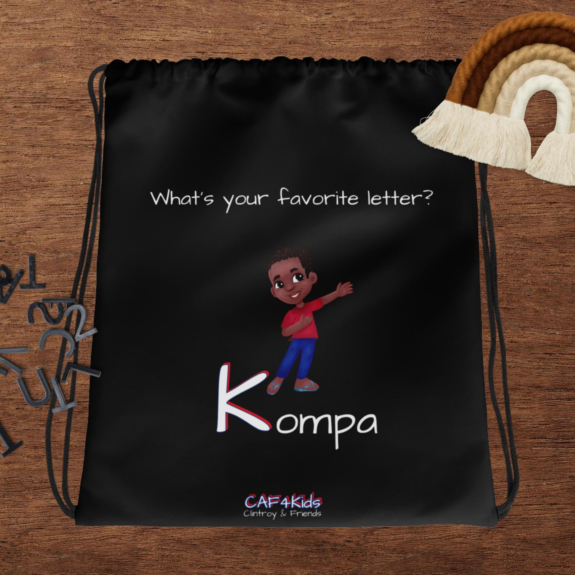 CAF4Kids Black Drawstring Bag - Letter K